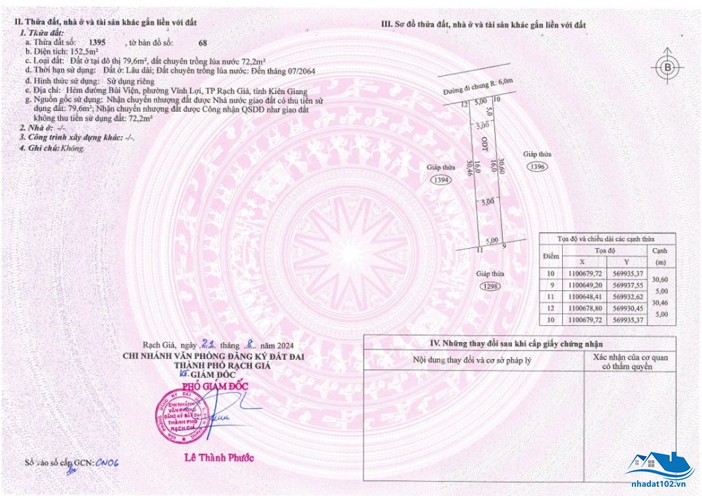 - Thửa 1: diện tích 6m x 60m = 361,7m2; trong đó có 239m2 đất ở đô thị, còn lại đất CLN.