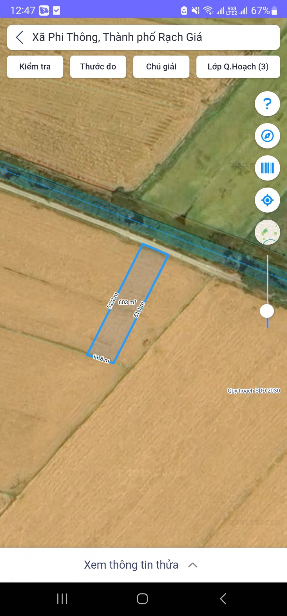 Diện tích: 40m x 168m = 6.718m2. Đất trồng lúa, quy hoạch đất ở