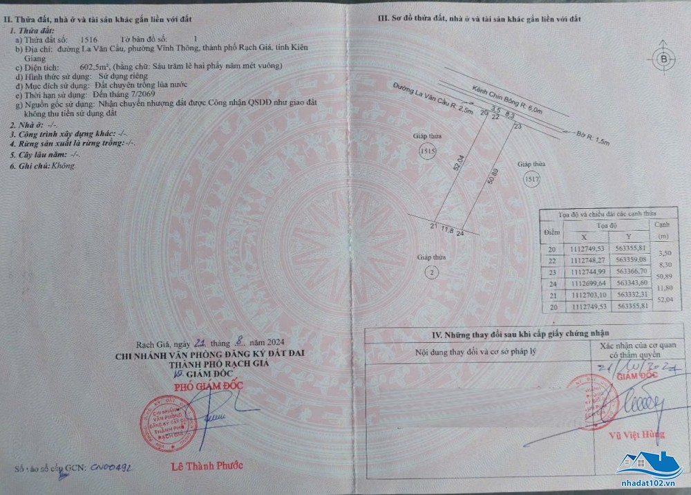 Bán đất 600m2 mặt tiền đường La Văn Cầu (kênh Chín Bông) - phường Vĩnh Thông, An Giang