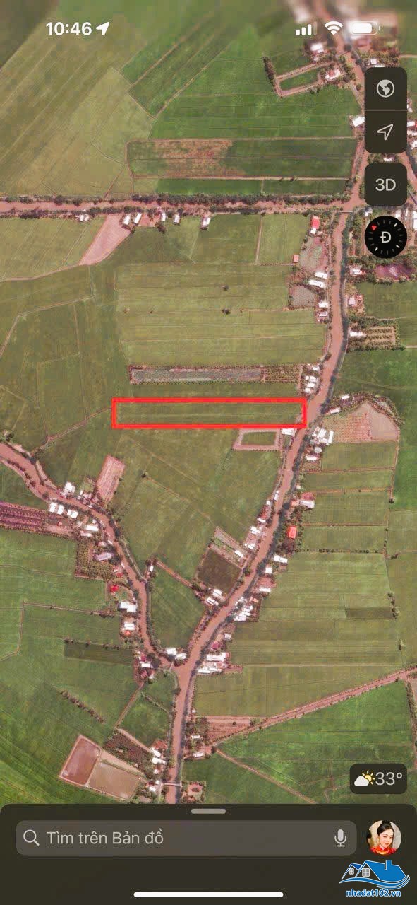 Diện tích: 111,5m x 65m = 7.330m2. Đất trồng lúa