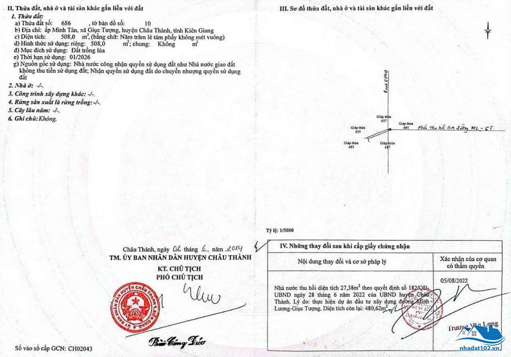 Địa chỉ đất: ấp Phước Hoà, xã Thạnh Lộc, An Giang