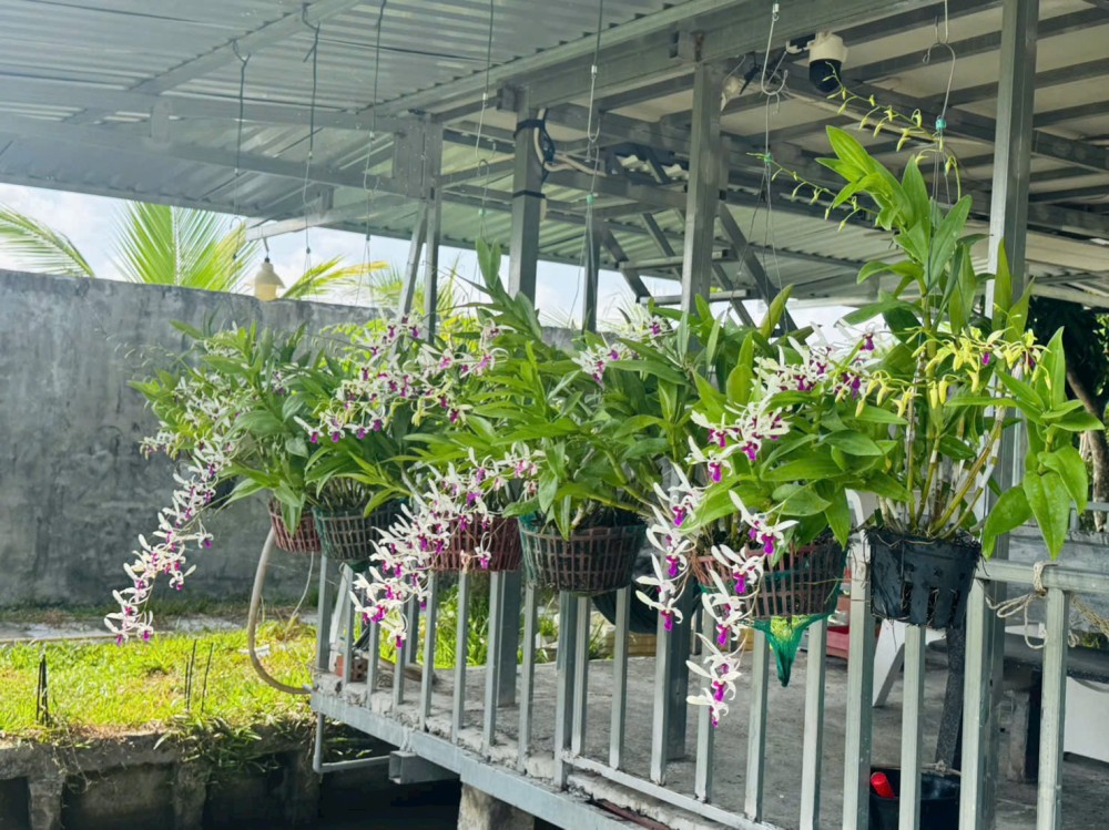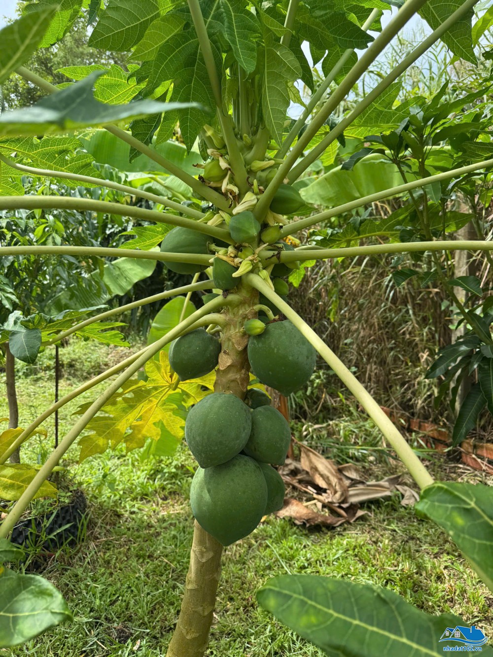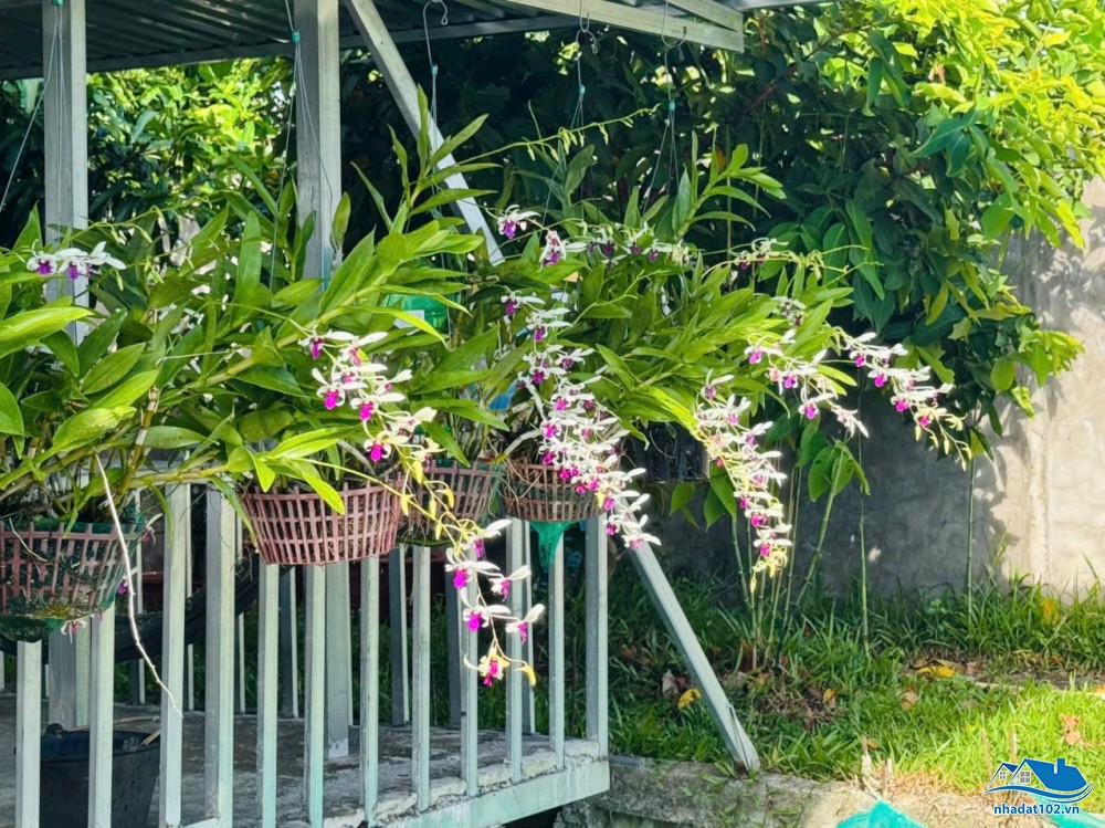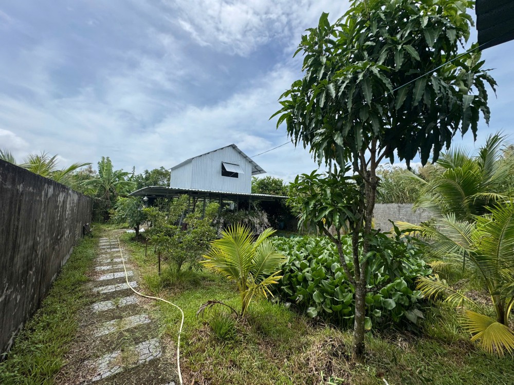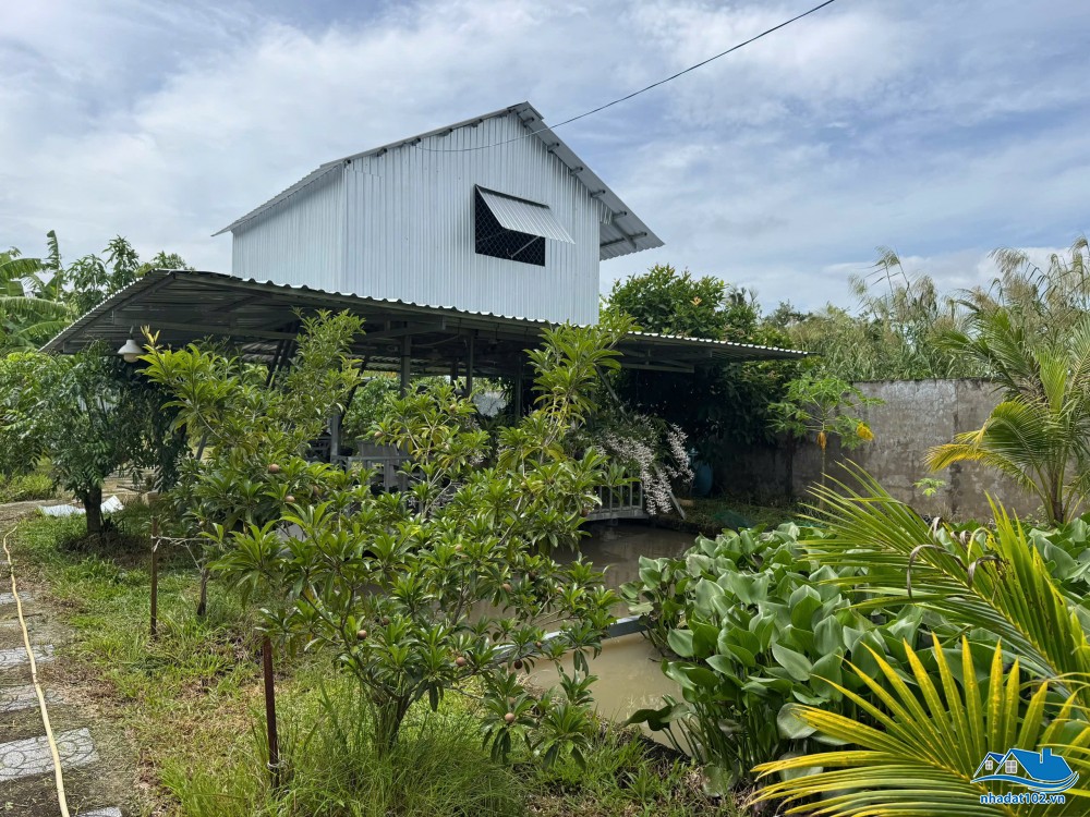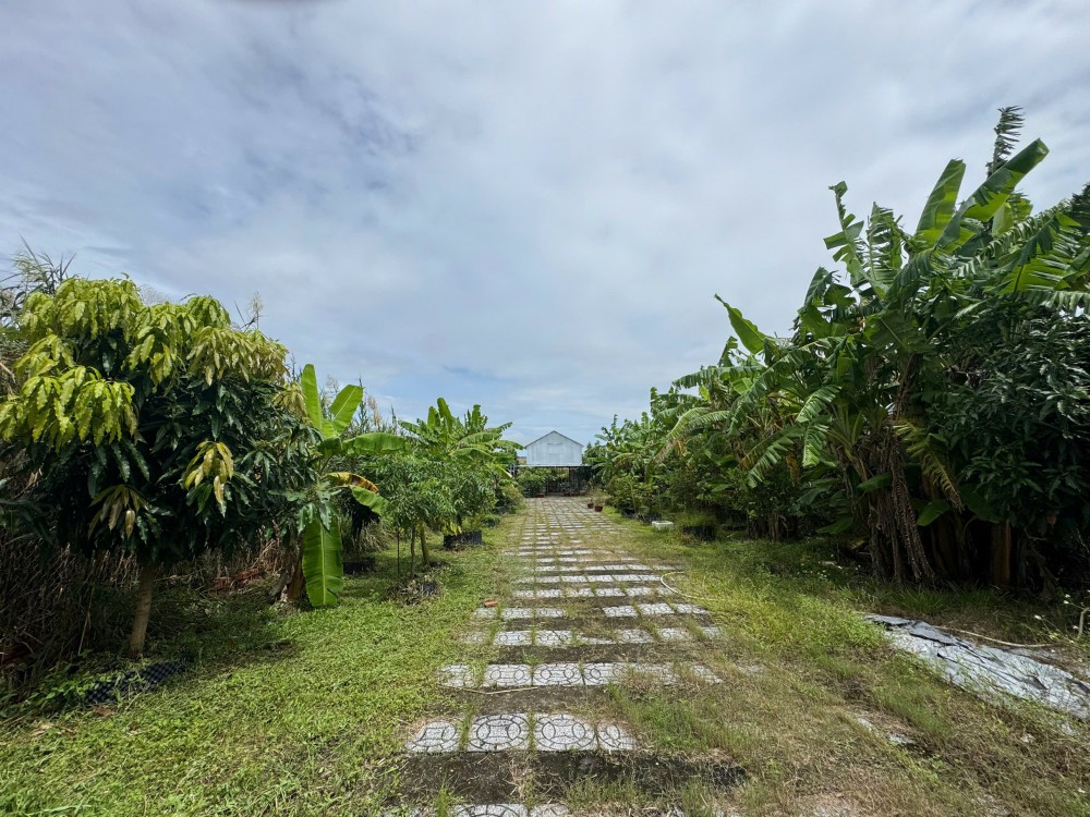 Đất đã lên vườn cây ăn trái (xoài, dừa, chuối, mít và một số cây kiểng như hoa lan).
