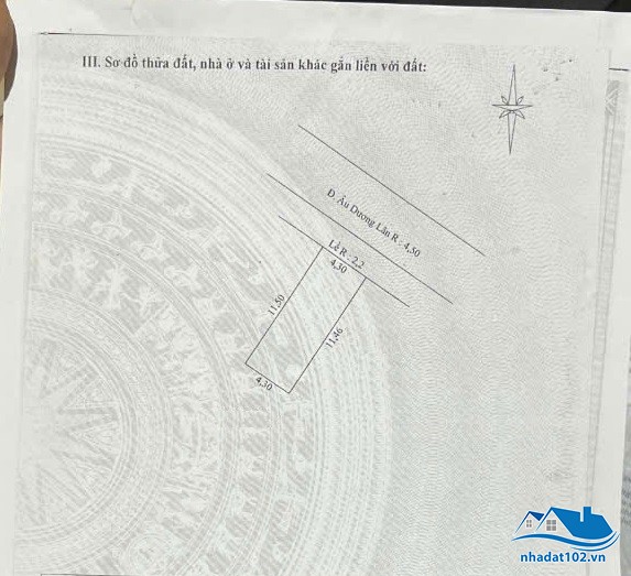 Diện tích đất 4m x 15m = 60m2; đất ở đô thị 100%
