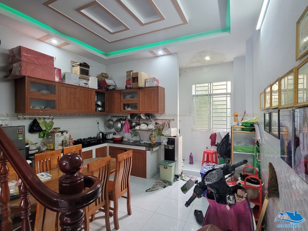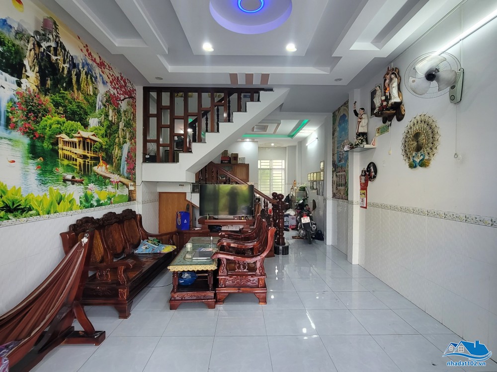 Nhà 1 trệt 1 lầu, nhà hoàn công cấp 3. Nhà gốm có: sân đậu xe, phòng khách, 3 phòng ngủ, bếp, 3 toilet. Phía sau giáp hẻm kỹ thuật 2m.