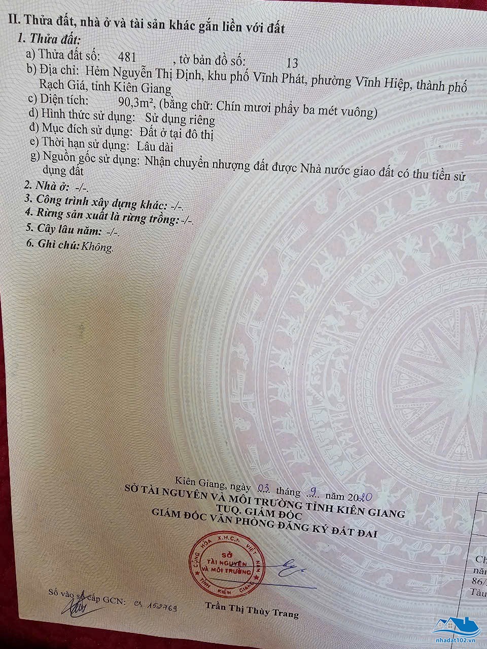 Bán đất 5x17,8 hẻm 90 Huỳnh Tấn Phát, cách đầu hẻm 450m (Kp Thông Chữ, P Vĩnh Hiệp, Tp Rạch Giá, Kiên Giang)