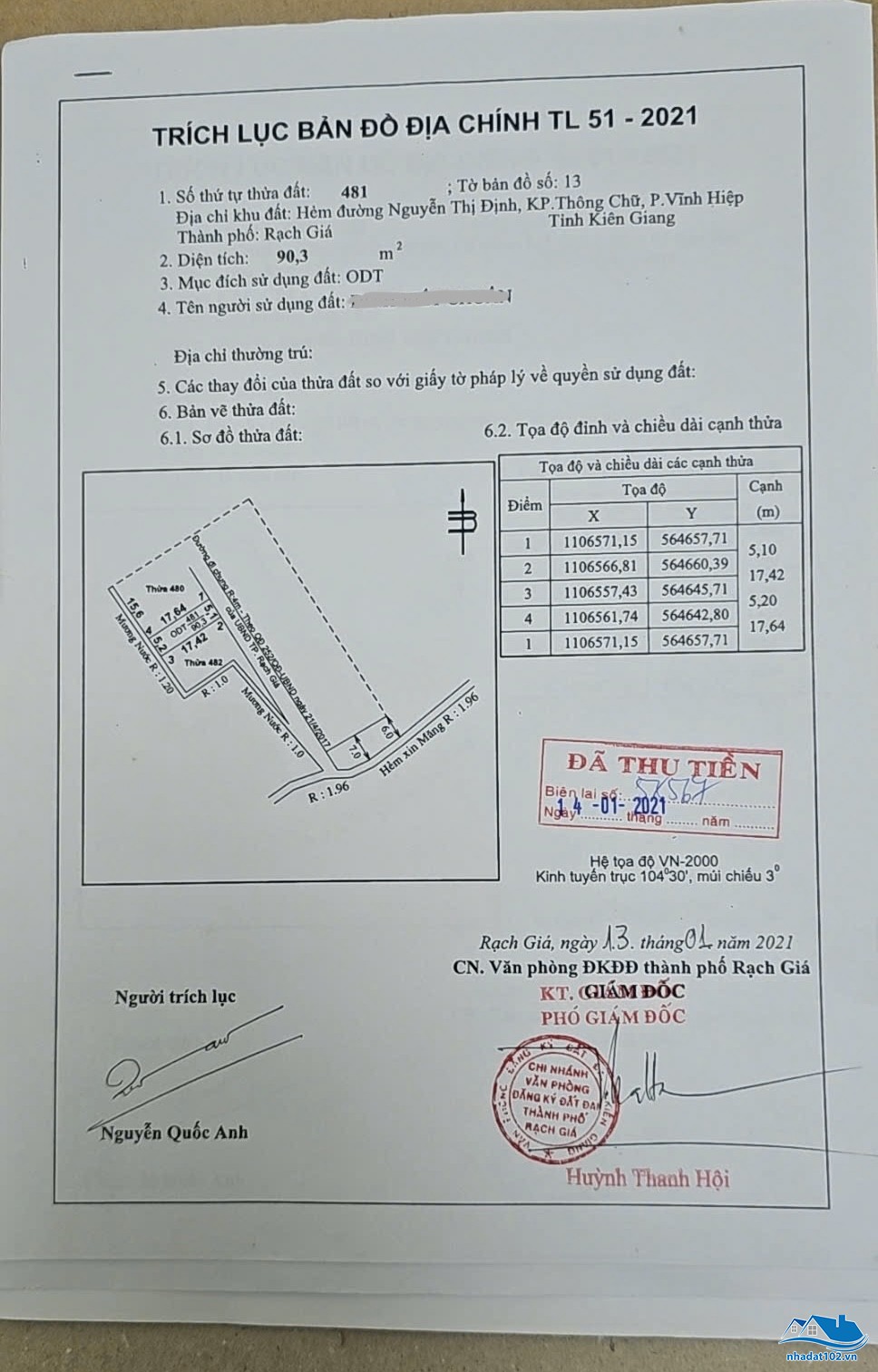 Bán dất hẻm 124 Huỳnh Tấn Phát, phường Rạch Giá, tình An Giang (phường Vĩnh Hiệp cũ).