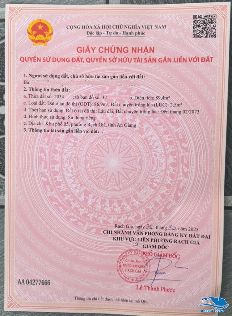 Bán đất tặng nhà mặt tiền đường Lê Quý Đôn (phường An Bình cũ - p Rạch Giá, An Giang 68)
