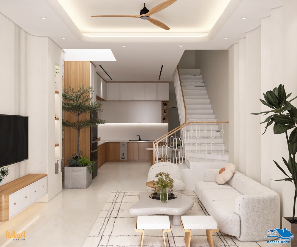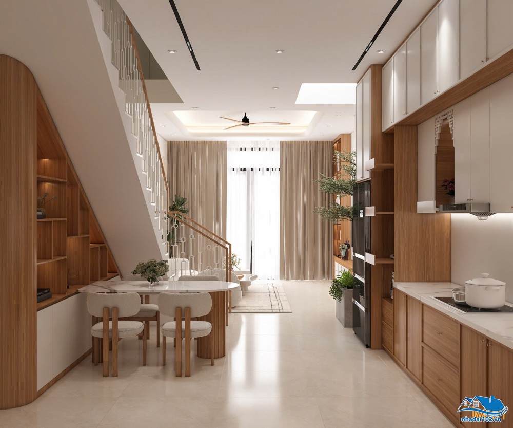 - Tầng trệt: phòng khách, không gian bếp, toilet