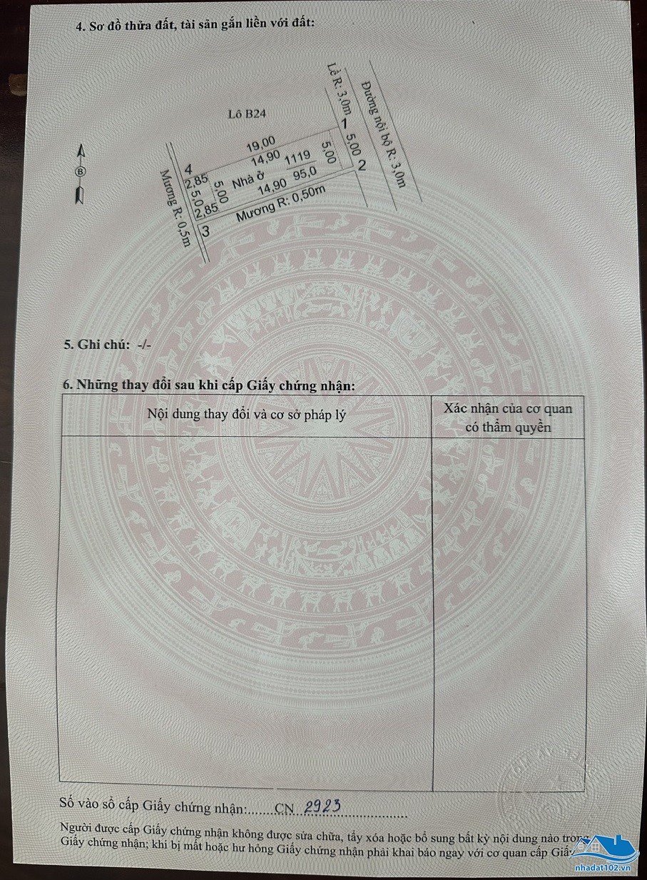 Diện tích đất: 5m x 19m = 95m2; đất ở đô thị 100%