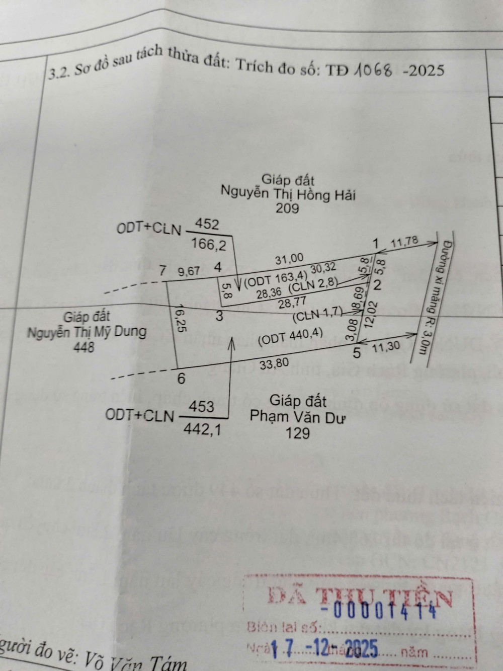 Diện tích: 5,8m x 31m. Thực tế dài 42m. Có 163m2 đất ở