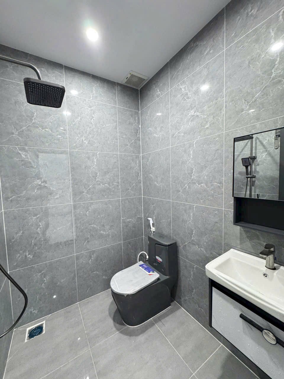 Các phòng ngủ, toilet đều được ốp gạch tới trần nhà.