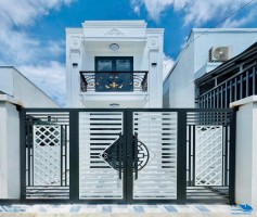Nhà trệt 1 lầu, kết cấu gồm: sân đậu ôtô, phòng khách, 3 phòng ngủ, 3 wc, bếp, phòng thờ