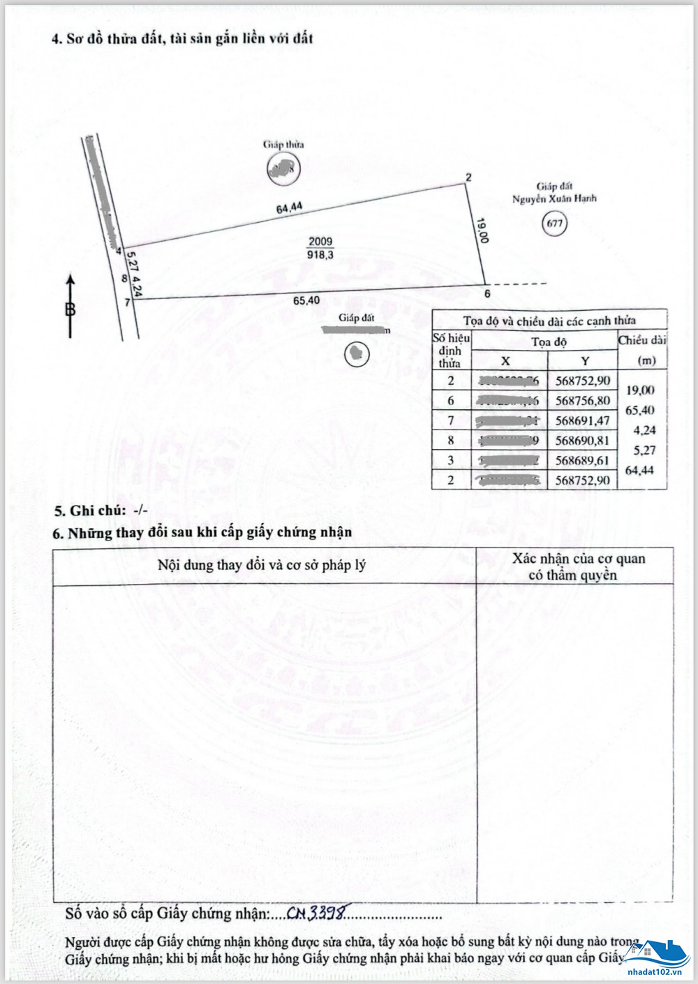 Nền 4. Diện tích: 5m x 19,3m = 96,6m2. Hướng tây bắc. Giá bán: 650 triệu