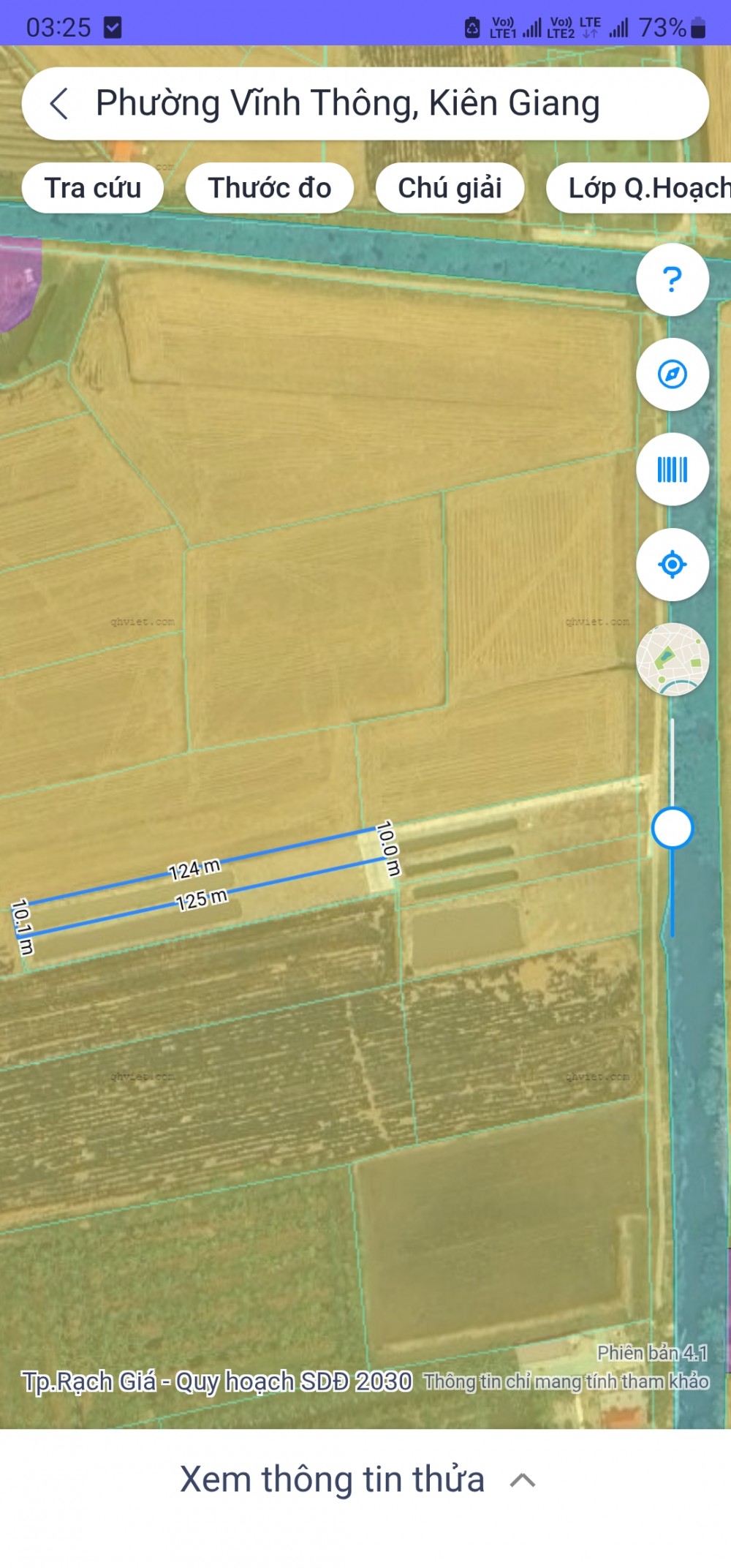 Đất ruộng 1.037m2 mặt tiền kênh Phán Xuyên, cách cầu Đập Đá 900m (phường Vĩnh Thông, An Giang 68)