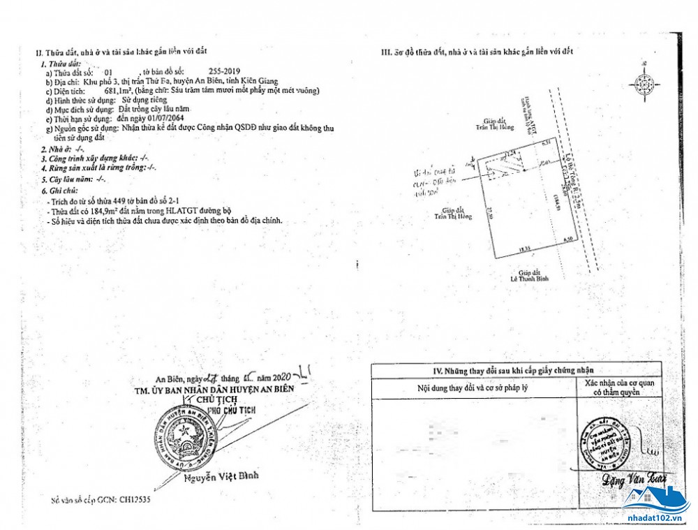 Bán đất 10x39 tuyến tránh khu phố 4 (thị trấn Thứ 3, huyện An Biên, Kiên Giang)