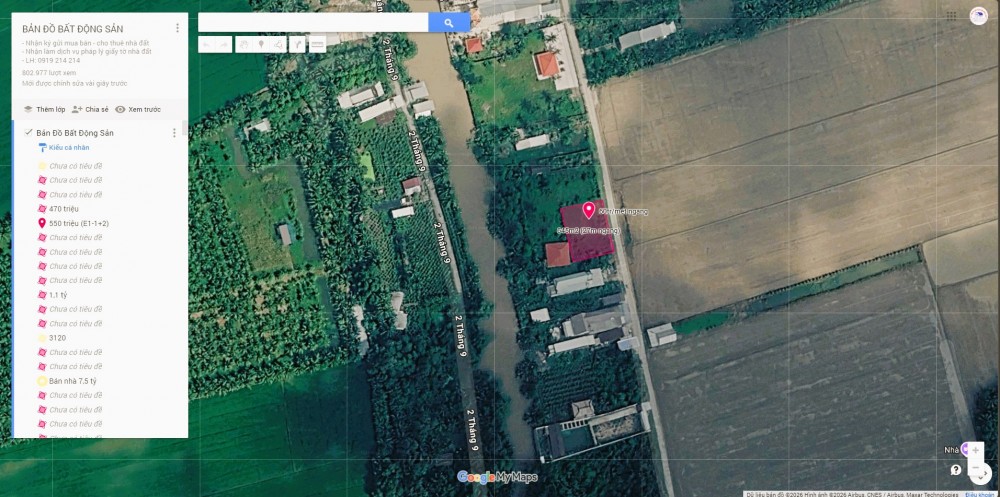 Thửa 09. Diện tích: 10m x 39,5m = 392,7m2. Có 50m2 đất ở, còn lại đất lúa