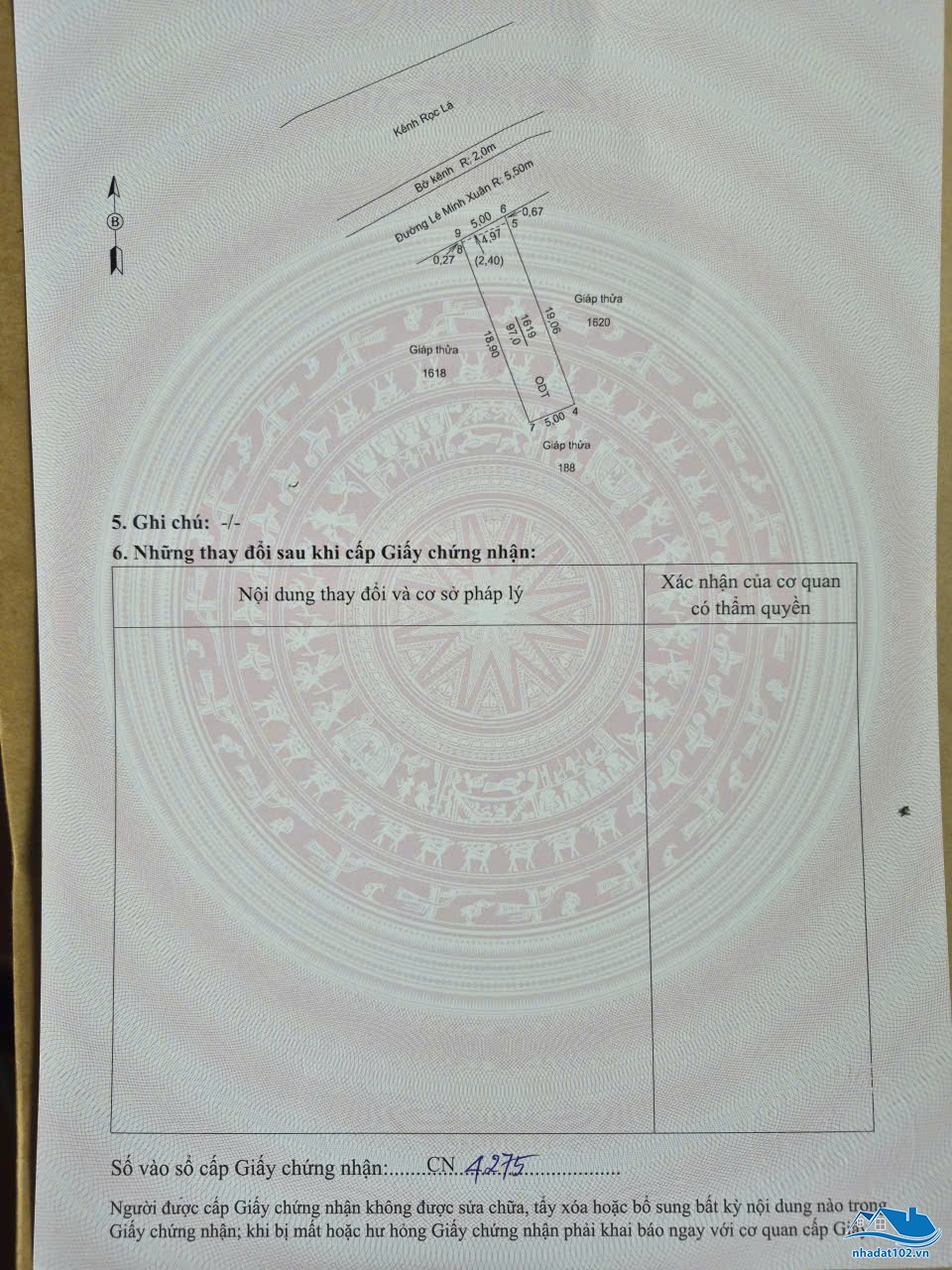 Diện tích: 6m x 18m = 104,8m2. Đất ở đô thị 100%